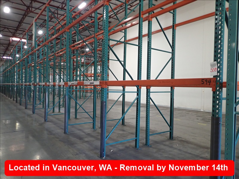 LOT, 24-SECTIONS OF 20' X 44" D X 90" W SHELVING (21 DAMAGED UPRIGHTS, ROW 6, $500 REFUNDABLE DEPOSIT REQUIRED FOR PROPER STUD GRINDING)
