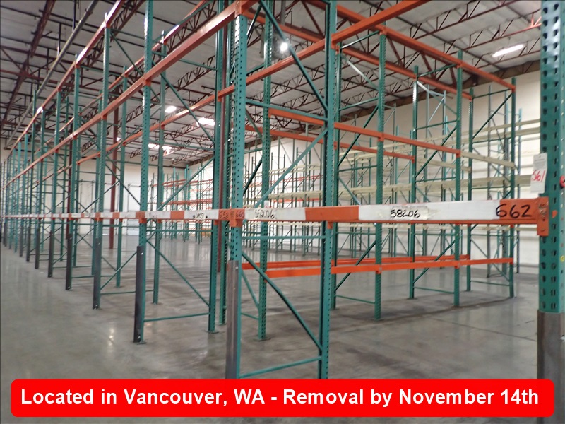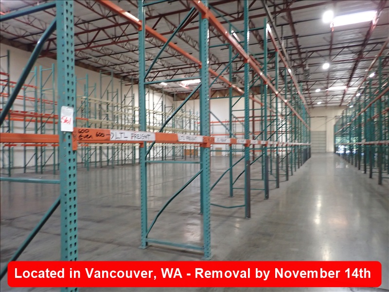 LOT, 16-SECTIONS OF 20' X 44" D X 90" W SHELVING (15 DAMAGED UPRIGHTS, $500 REFUNDABLE DEPOSIT REQUIRED FOR PROPER STUD GRINDING)