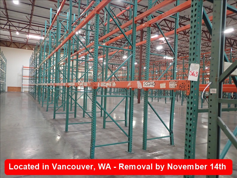 LOT, 4-SECTIONS OF 22' X 42" X 8' W SHELVING & 10-SECTIONS OF 22' X 42" D X 90" W SHELVING (ROW 8, $500 REFUNDABLE DEPOSIT REQUIRED FOR PROPER STUD GRINDING)