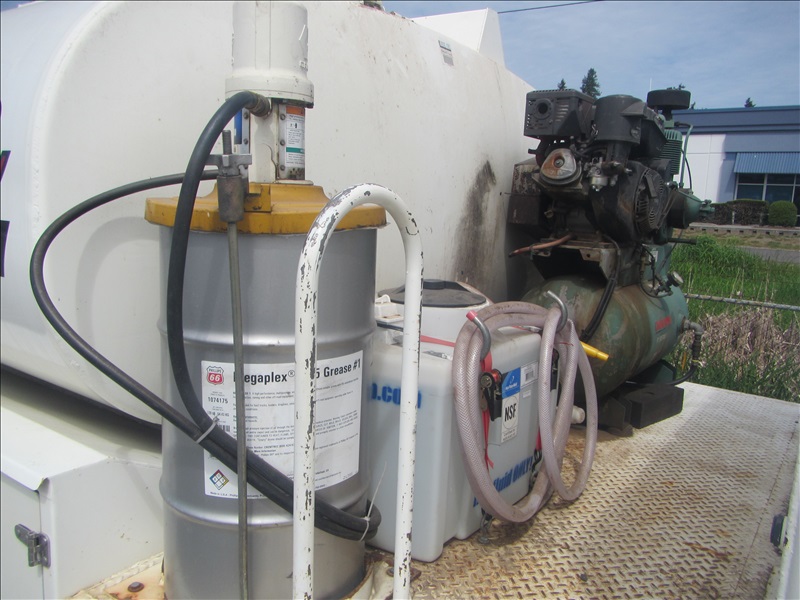 S/A FUEL LUBE TRUC, CAT C7,AUTO, 1,000 GAL FUEL TANKW/HOSE & METER, (2) 125 GALPRODUCT TANKS COOLANT TANK,GREASE BBL, EVAC SYST W/HOSE,REELS & DISP, CHAMPION AIRCOMP W/KOHLER 4-STORAGE COMP,