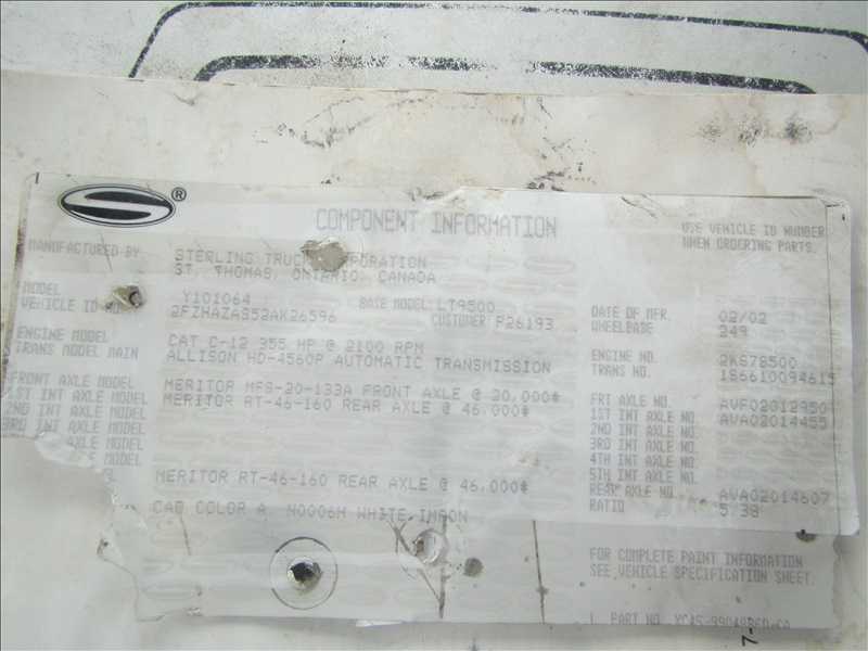 T/A HYDRO/VAC TRUCK, VACTOR2115 SERIES, AUX JOHN DEERE6 CYL DIESEL, 355 HP, CATC-12, AUTO(INCLUDED RODDER & RELATEDPARTS ON PALLET)