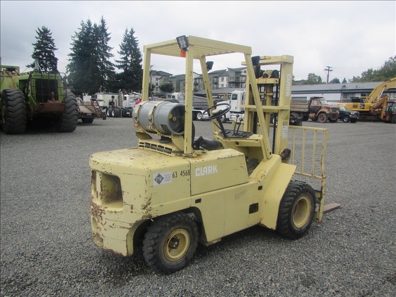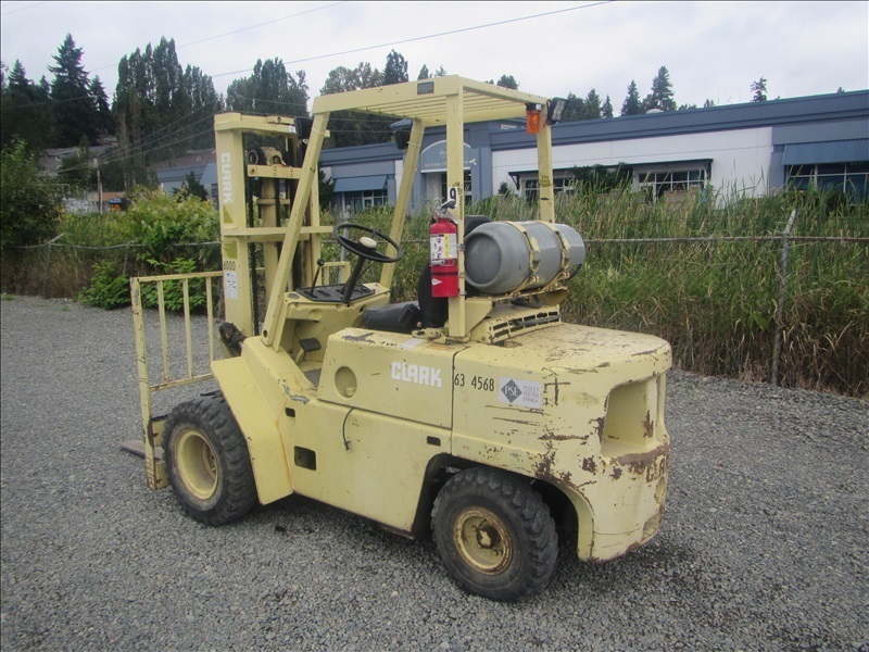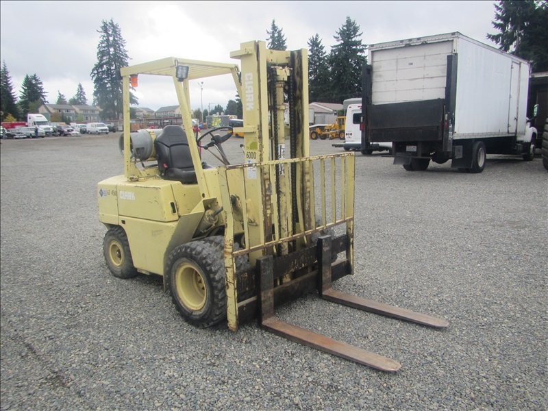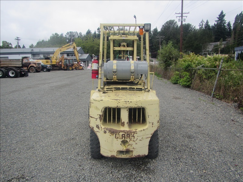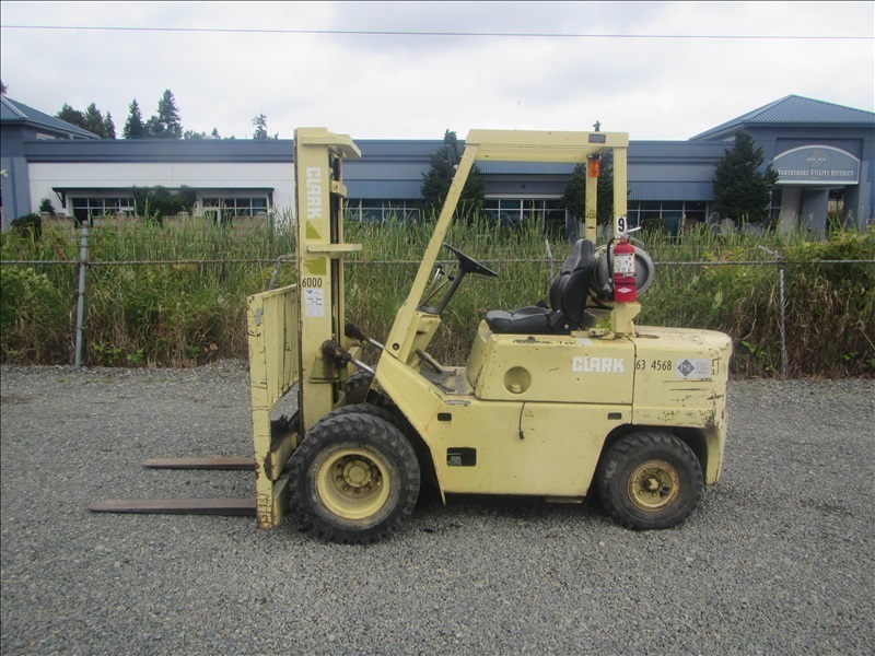 6,000 LB DUAL PNEUMATIC TIREFORKLIFT, 124" FORK HEIGHT,2-STAGE MAST, 4 CYL PROPANEHOUR METER READS: 748