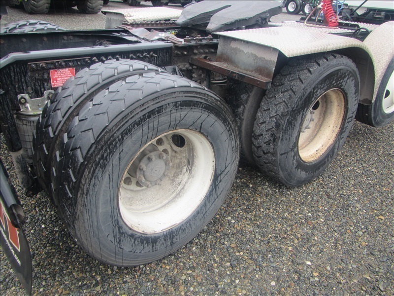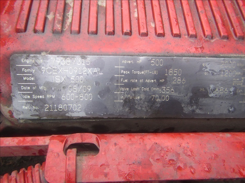 TRI/A DAY CAB, TRACTOR,500 HP CUMMINS ISX 500,18 SPD, AIR SUSPENSION, 222"W/B, 14,000 LB REARS, DROPAXLE, SLIDER(COUNTY DISCLAIMER: BAD TURBO)