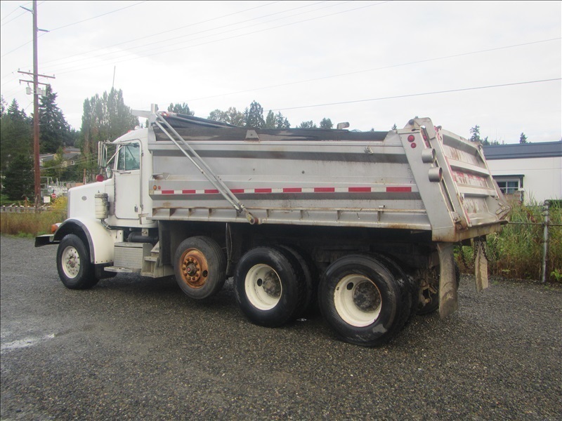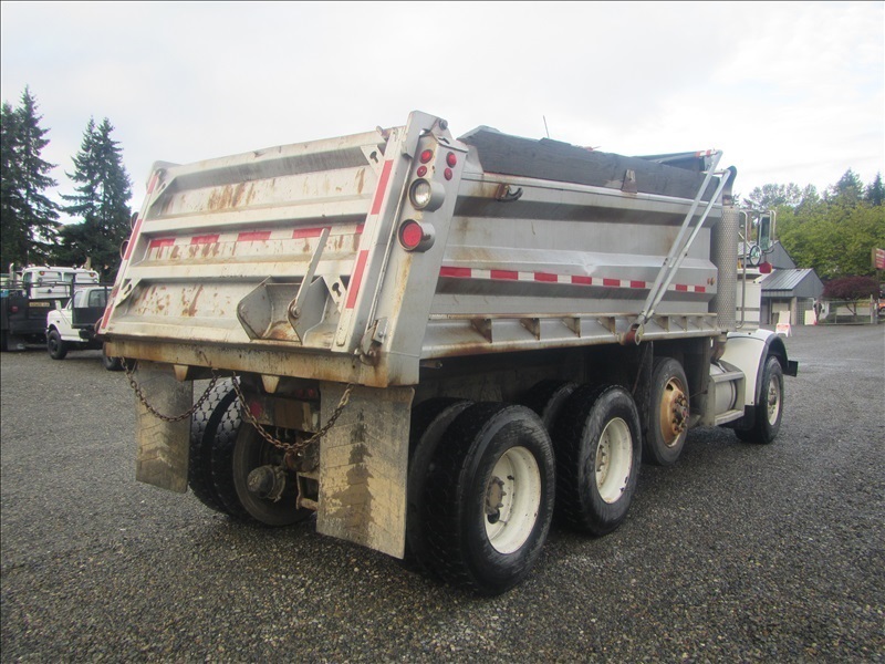 TRI/A DUMP TRUCK, 15'5"STEEL BOX, TARP SYSTEM,355 HP, CAT 3406, 18 SPD,BLOCK BEAM SUSPENSION, 200"W/B, 14,000 LB FRONT, 40,000LB REARS, DROP AXLE
