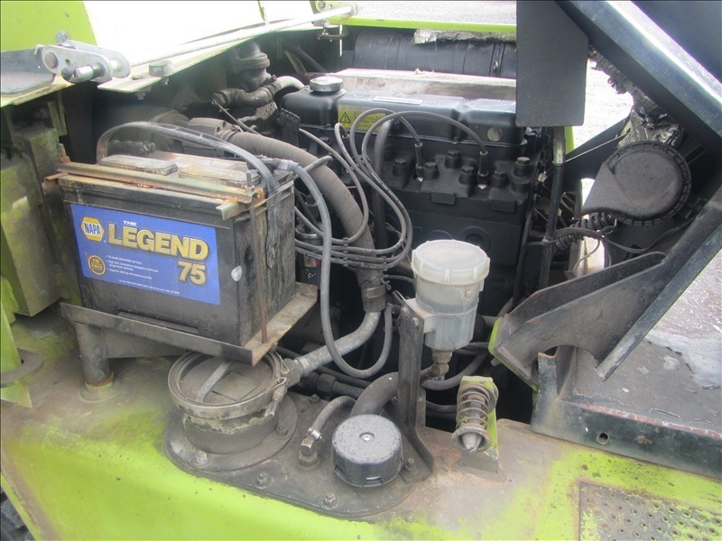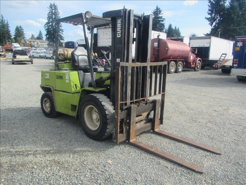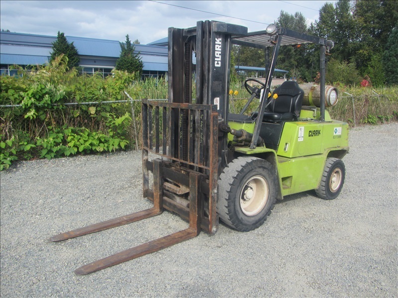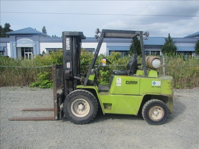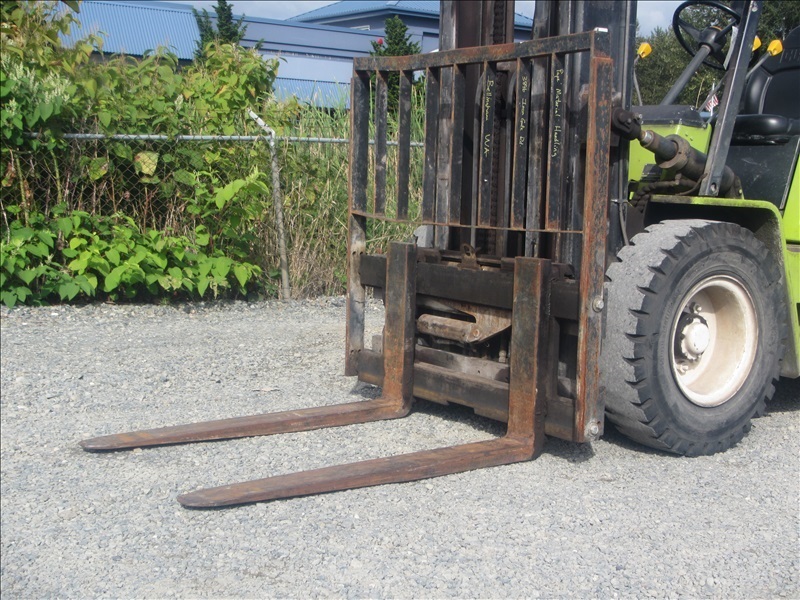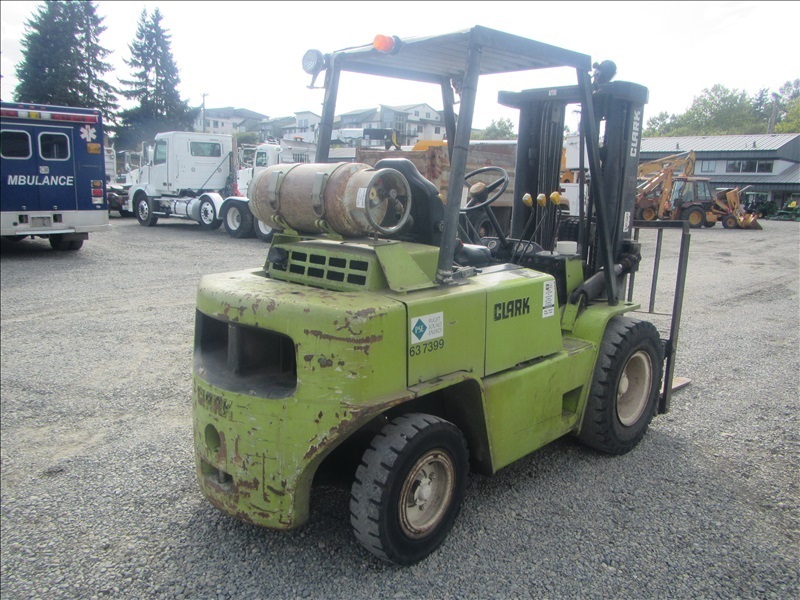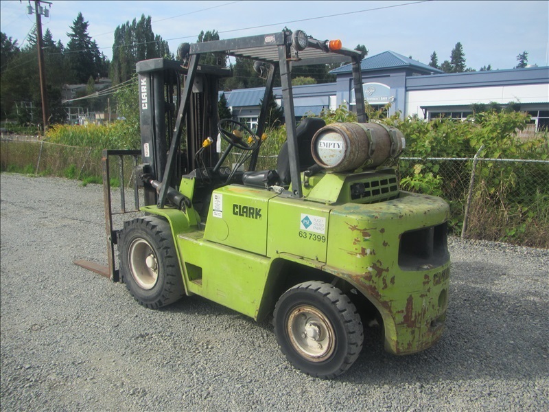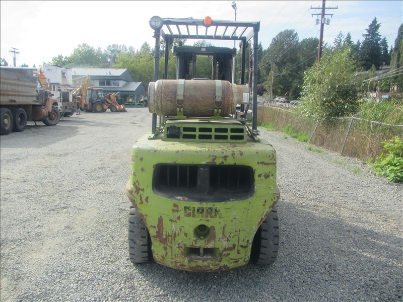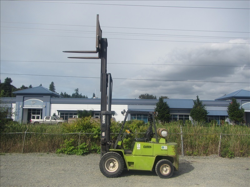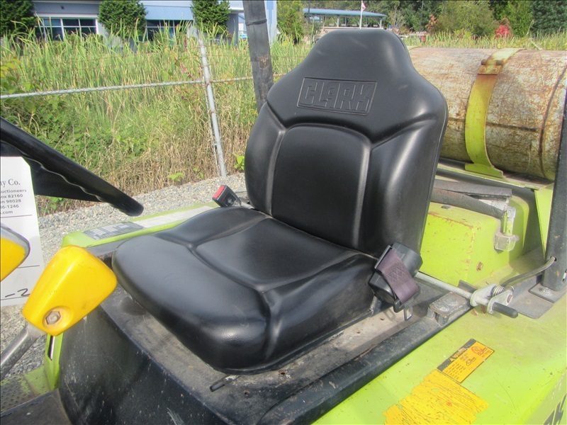 8,000 LB SOLID CUSHION TIREFORKLIFT, 170" FORK HEIGHT,3-STAGE MAST, SIDE SHIFT,4 CYL PROPANEHOUR METER READS: 4,677