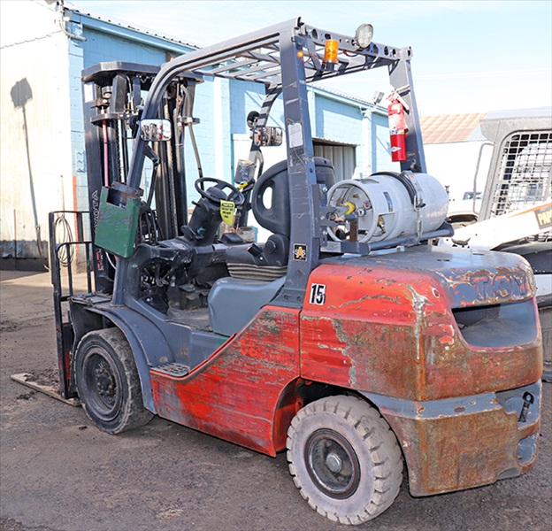 6,500 LB PNEUMATIC FORKLIFT W/ SIDE SHIFT & FORK POSITIONING, THREE STAGE MAST, SOLID PNEUMATIC TIRES, LP FUEL (FORKLIFT LOCATED AT 335 NW HESS STREET, MADRAS, OR 97741 - PREVIEW BY APPOINTMENT ONLY, CONTACT STEVE KENISON - 541.325.1698 - ITEMS MUST BE REMOVED BY 2/22/2019)