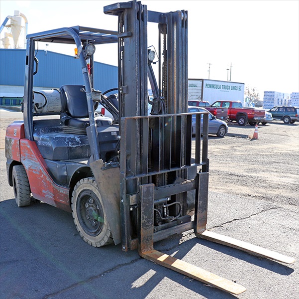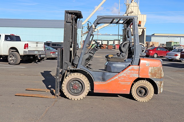 6,500 LB PNEUMATIC FORKLIFT W/ SIDE SHIFT, THREE STAGE MAST, SOLID PNEUMATIC TIRES, 42" POLISHED & TAPERED FORKS, LP FUEL (FORKLIFT LOCATED AT 335 NW HESS STREET, MADRAS, OR 97741 - PREVIEW BY APPOINTMENT ONLY, CONTACT STEVE KENISON - 541.325.1698 - ITEMS MUST BE REMOVED BY 2/22/2019)