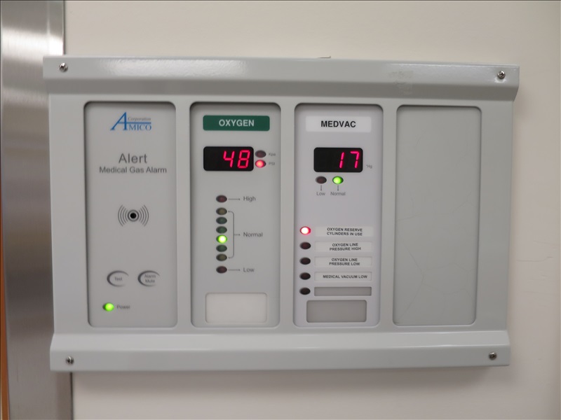 AUTOMATIC MEDICAL OXYGEN MANIFOLD W/AMICO ALERT WALL-MOUNTED MEDICAL GAS ALARM, & LINE PRESSURE SENSOR