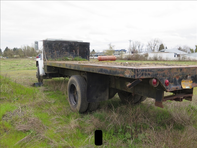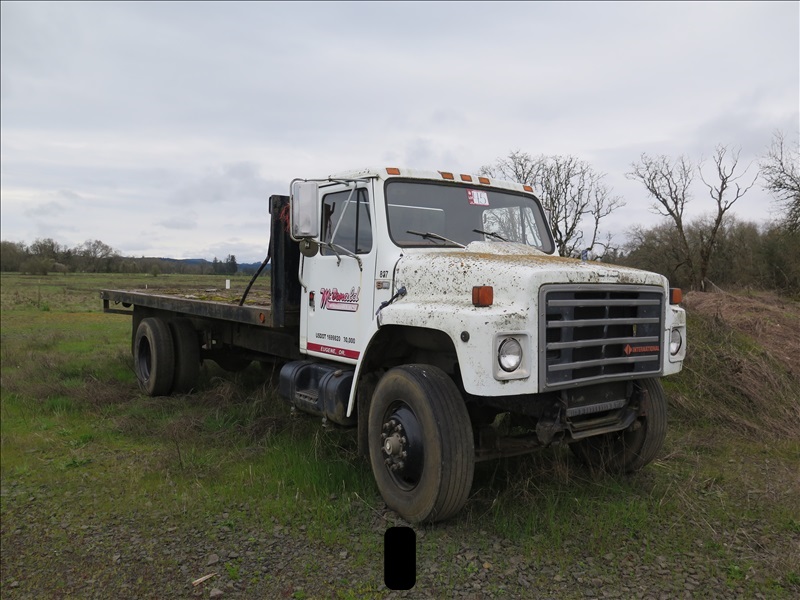 S/A FLATBED TRUCK, DT466, 4/2, ODOMETER READS: 160,086 (NO BATTERIES)