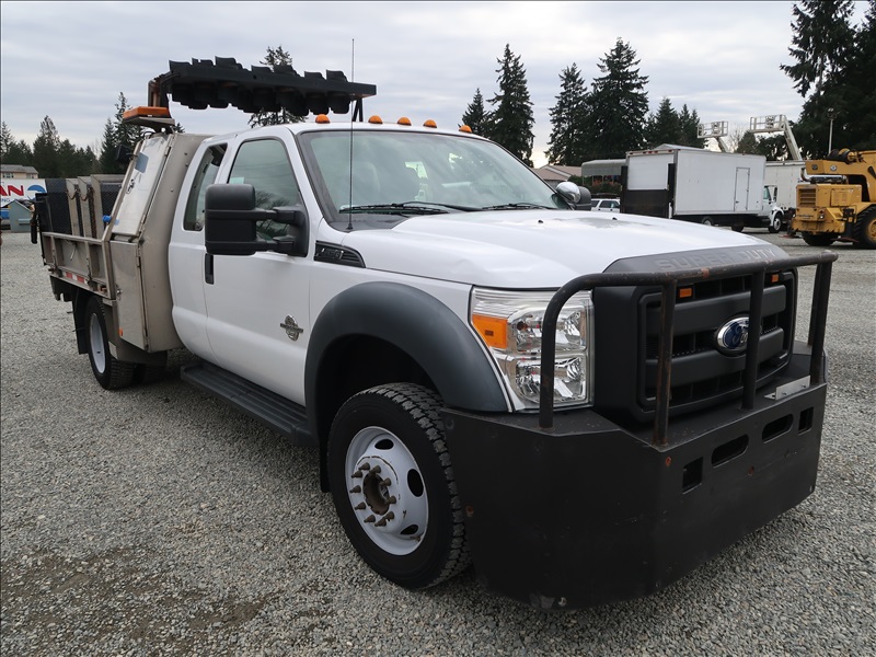 EXT CAB 8' FLATBED, POWER STROKE, AUTO, 4X4, LIFTGATE, DIRECTIONAL TRAFFIC BOARD, SIGN RACK (CHECK ENGINE LIGHT IS ON)
