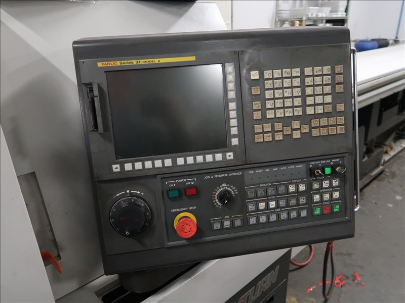 CNC SWISS LATHE, 7-AXIS, 1.5" DIAMETER STOCK, FANUC SERIES 31i-Model A DIGITAL CONTROLS, MTA TRACER 32 14' BAR FEEDER, MISTBUSTER VARIABLE SPEED OILER, MP SYSTEMS PRESSURIZED OIL RESERVOIR, 3-PHASE, 5,445 CUTTING HOURS