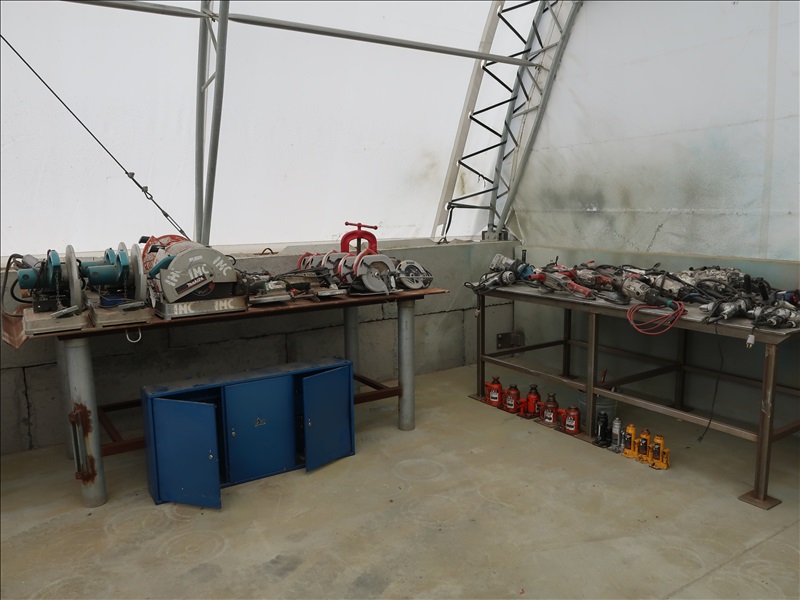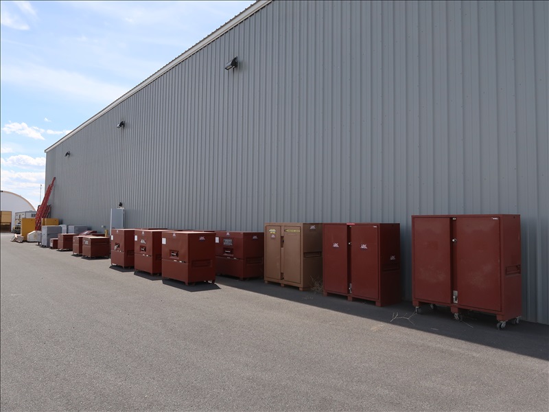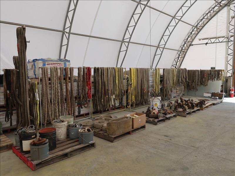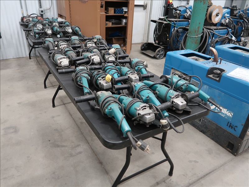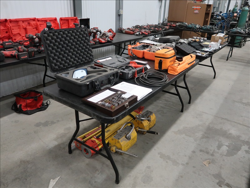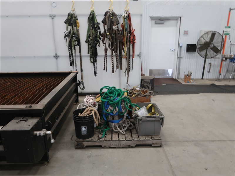 INGERSOLL RAND 5 HP & 10 HP TANK MOUNTED COMPRESSORS, 2007 4' X 7' 200 PSI AIR RECEIVER, SAND BLASTER, A-FRAME HOIST, QUANTITY OF POWER & HAND TOOLS, WINCHES, PIPE ROLLS, SPRAYERS, GARNET, KLEEN BLAST, STEEL TALES, ROLLCASE, POLY TANKS, STEEL SAWHORSES &