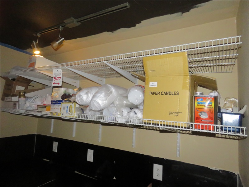 LOT, MISC KITCHEN SUPPLIES ON THIS SHELF W/SHELVING