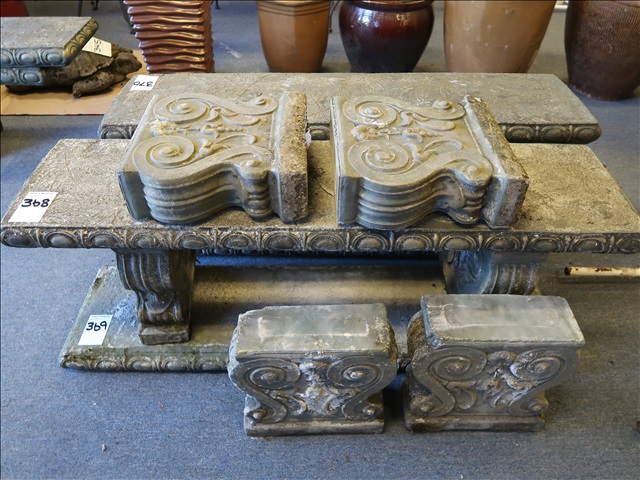 LOT, (3) MATCHING DECORATIVE CEMENT PLANTERS