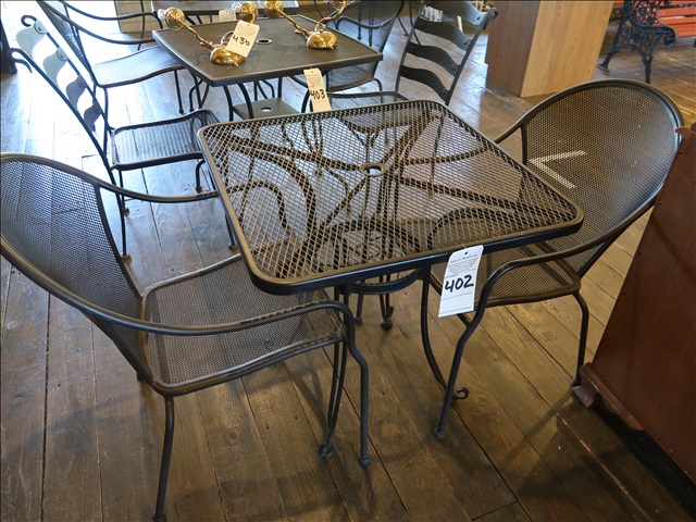 28" X 28" WROUGHT IRON TABLE W/(2) CHAIRS