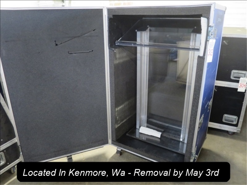 CLEAR PLASTIC LECTERN W/TRAVEL CASE ON CASTERS