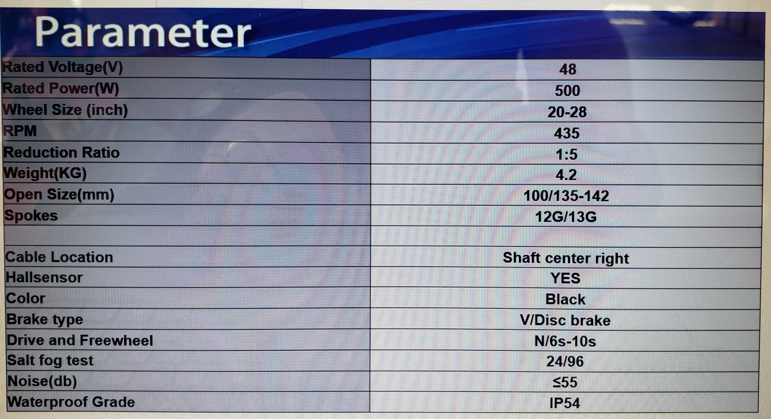 ELECTRIC BIKE, 36V, 500W, 1:5 GEARED-HUB MOTOR