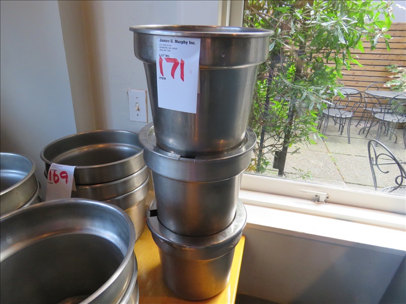 LOT, (3) 9" SS ROUND INSERTS W/(2) LIDS