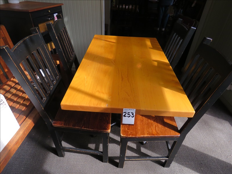 28" X 46" SINGLE PEDESTAL BUTCHER BLOCK DINING TABLE W/(4) CHAIRS