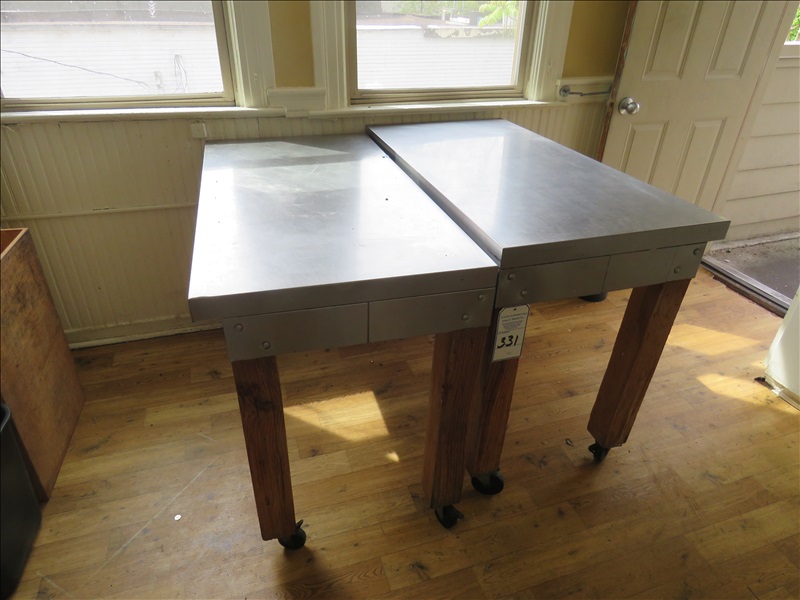 LOT, (2) 48" SS TOPPED TABLES ON CASTERS