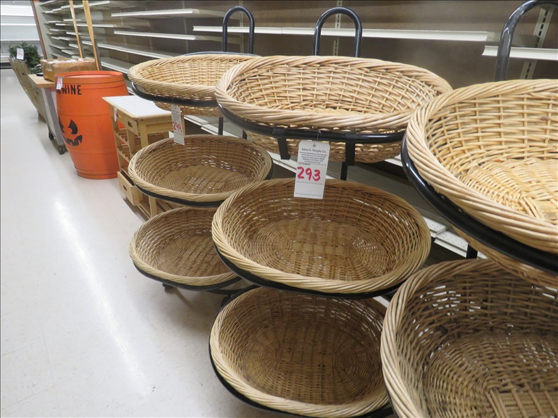 LOT, (3) WICKER BASKETS ON IRON STAND