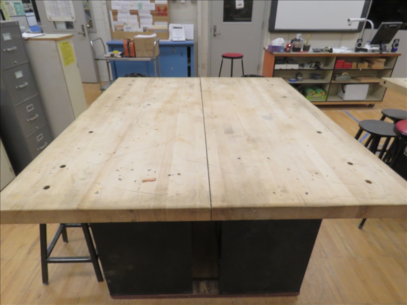 54" X 64" 2-SIDED BUTCHER BLOCK TOP WORK STATION (WOOD SHOP ROOM 320)