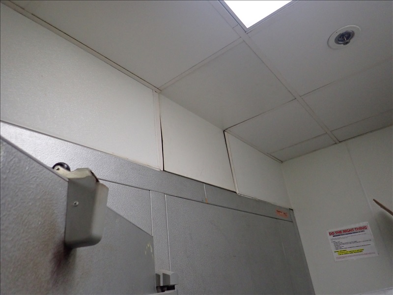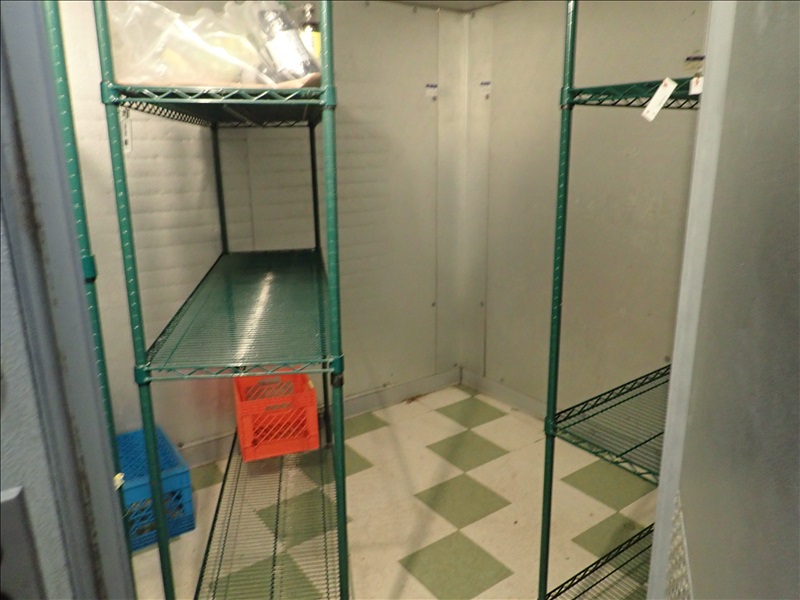APPROX. 8'X10'X7'6" WALK-IN COOLER, ROOF MOUNTED COMPRESSOR/EVAPORATOR, LIGHT, (3) WIRE RACKS, SPRINKLER HEAD
