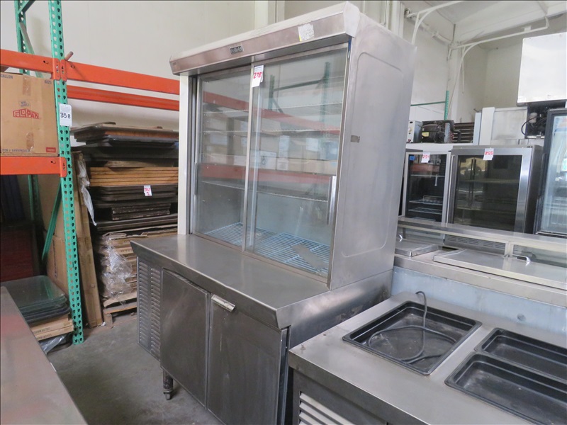 REFRIGERATED DISPLAY REFER ON CASTERS (MUST BE PICKED UP BY 12 PM, TUESDAY, JULY 30TH)
