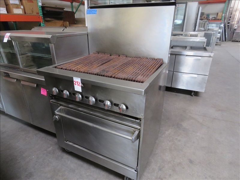 OVEN W/6-BURNER BROILER ON CASTERS (MUST BE PICKED UP BY 12 PM, TUESDAY, JULY 30TH)