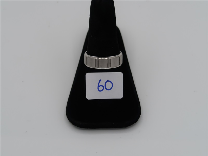 14K WHITE GOLD 7.5 MM RING WITH CARVED VERTICAL LINES, BRUSH IN SQUARE SECTIONS IN CENTER & SHINY SIDES, SIZE 10, RETAIL PRICE: $2750, GRAMS:10.4