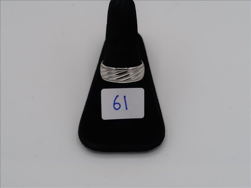 14K WHITE GOLD 8 MM RING WITH SLANT DIAMOND-CUT MILLIGRAIN EDGE ON COMFORT FIT BAND, RETAIL PRICE: $2450, GRAMS:9 DIA WT: COLLIER