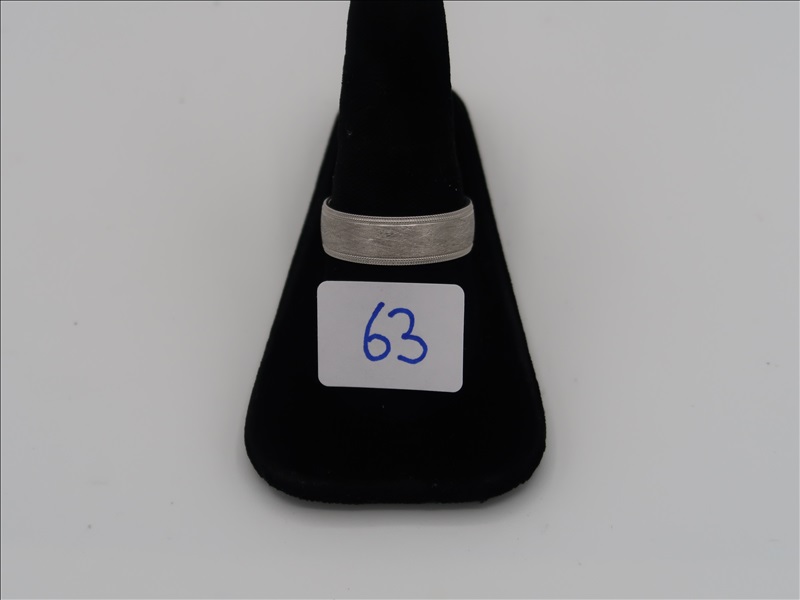 14K WHITE GOLD 7.2 MM RING WITH SATIN BRUSH CENTER & 2 MILLIGRAIN STEP EDGE SIDES, SIZE 10, RETAIL PRICE: $2890, GRAMS:9.2