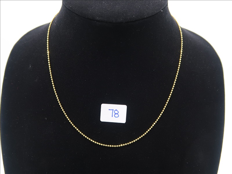 18" 14K YELLOW GOLD DIAMOND CUT BEAD CHAIN, RETAIL PRICE: $590, GRAMS:3.6