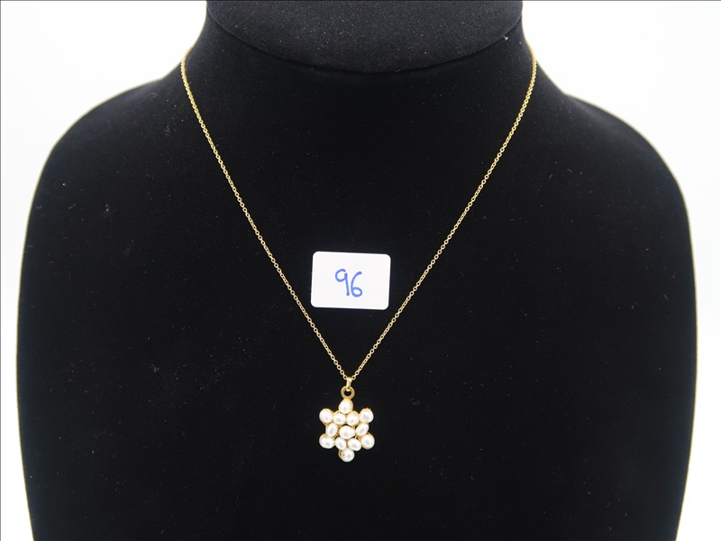 20K YELLOW GOLD PENDANT WITH 13 PEARLS & 16" GOLD-FILLED SS CHAIN, RETAIL PRICE: $450, GRAMS:2.5