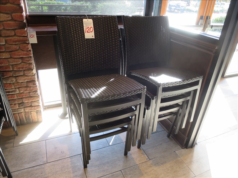 LOT, (8) OUTDOOR WICKER CHAIRS W/METAL BASE