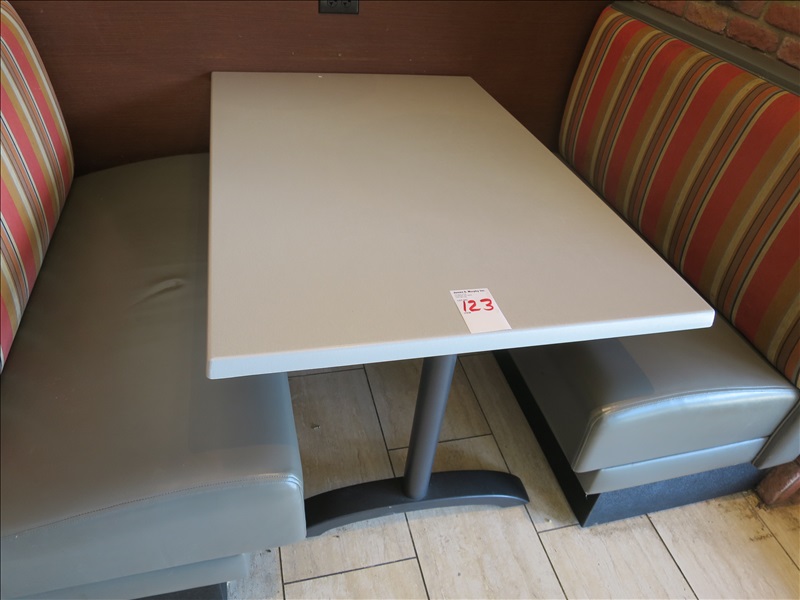 APPROX 31" X 48" DOUBLE PEDESTAL RESIN TOP OUTDOOR TABLE (PEDESTAL IS LOOSE)