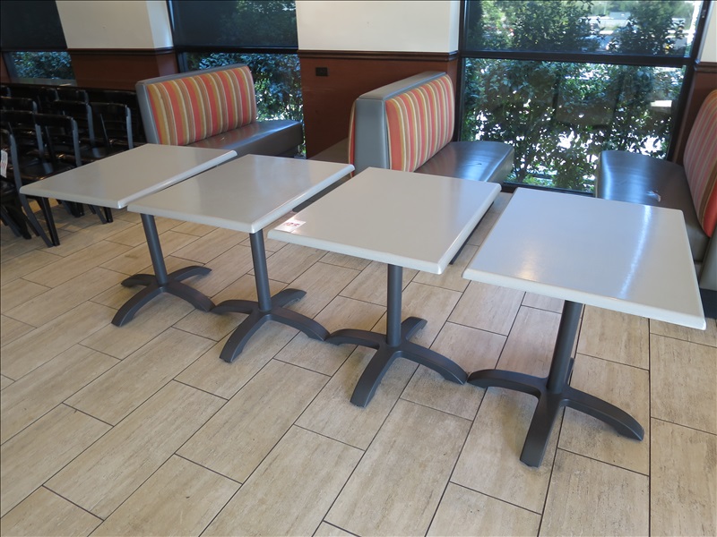LOT, (4) 24" X 31" SINGLE PEDESTAL RESIN TOP OUTDOOR TABLES