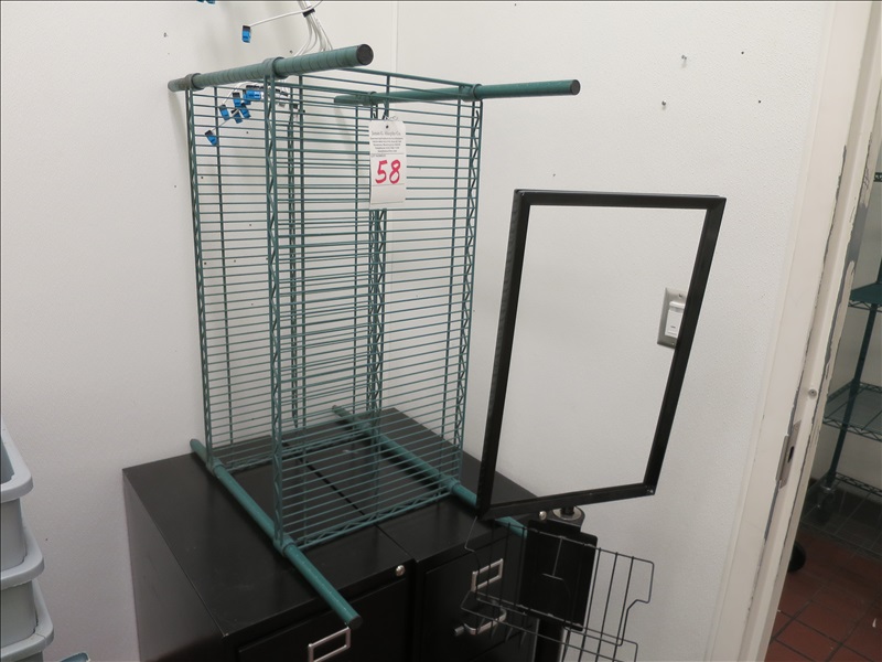LOT, (2) 2-DRAWER FILE CABINETS & (1) 36" WIRE RACK & SIGN HOLDER