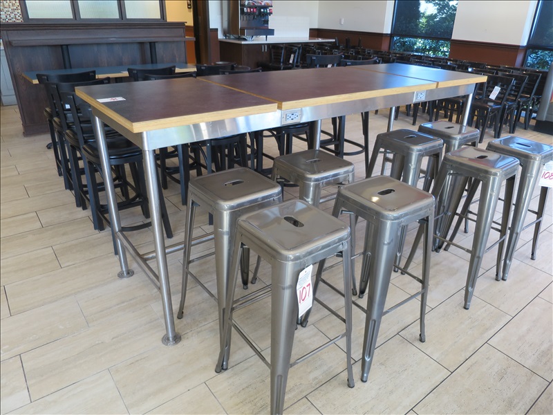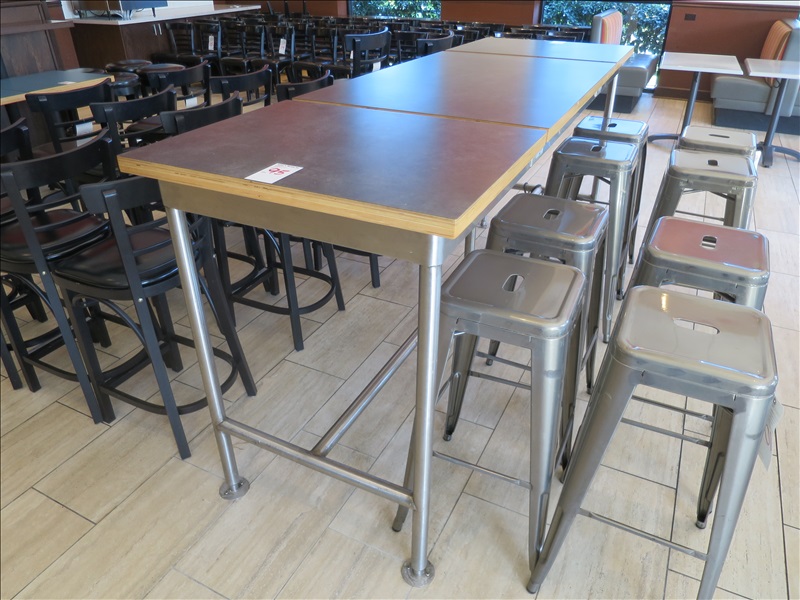 30" X 96" METAL FRAME LAMINATE TOP BUDDY BAR W/POWER EXTENSION BUILT-IN (REQUIRES UNSCREWING FROM FLOOR W/PHILLIPS HEAD)