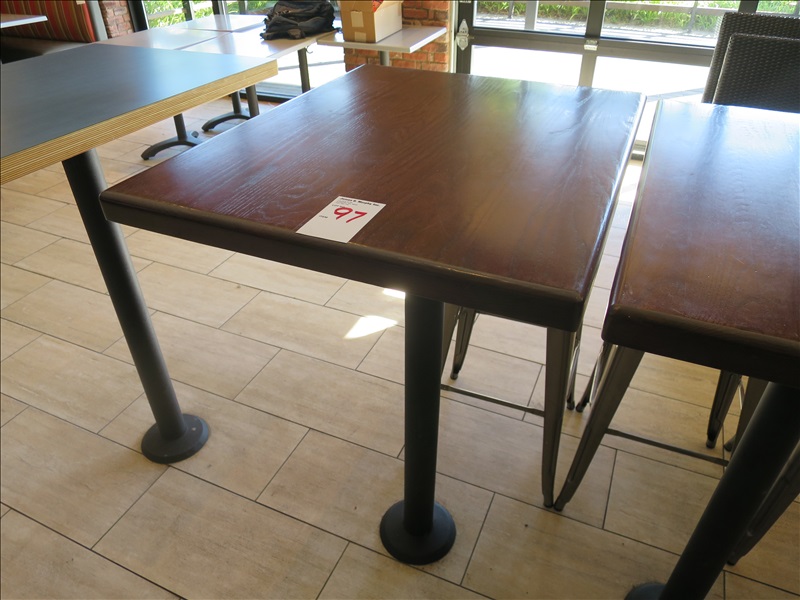 24" X 30" BOLTED TO FLOOR WOOD TOP BUDDY BAR (REQUIRES UNBOLTING FROM FLOOR MOUNTED BOLTS, BOLTS TO REMAIN IN FLOOR