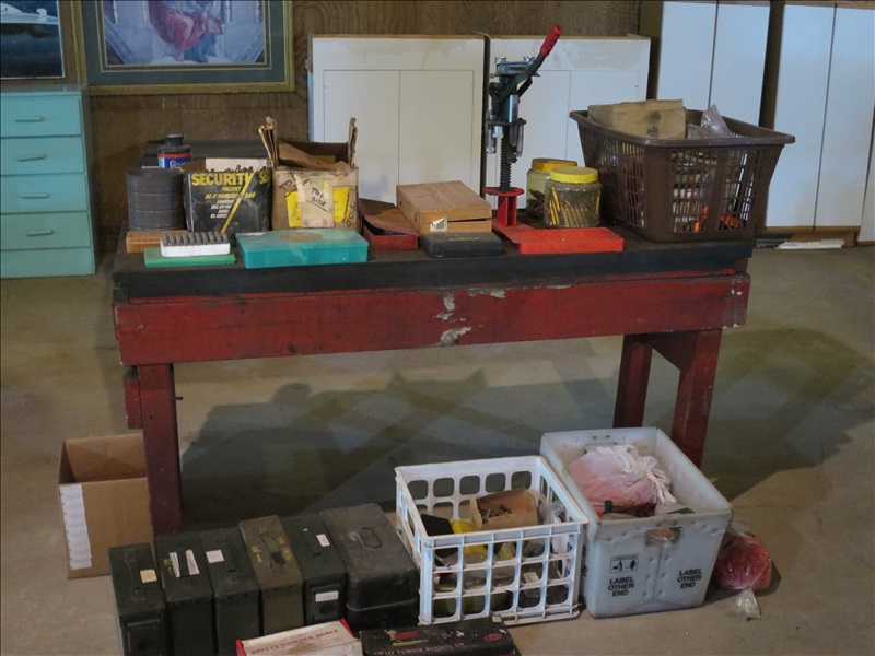 SHOTGUN RELOADER W/MISC. CASINGS & MISC. AMMO BOXES