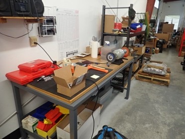 GROUP OF SHELVING, BENCH, BUFFER, INSPECTIONS TOOLS & MISC.
