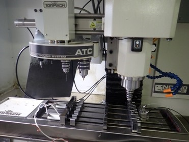 CNC VERTICAL MACHINING CENTER, 10 STATION ATC, 10"X33" TABLE, SUPER SPACER 4TH AXIS, TOUCH SCREEN CONTROLS & TOOLING