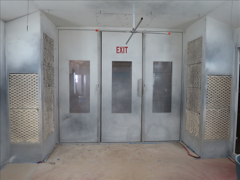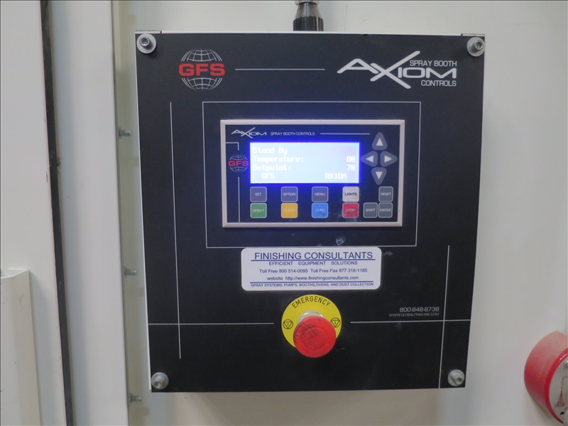 15'X24' PAINT BOOTH W/AXIOM SPRAY BOOTH CONTROLS, AMEREX FIRE SUPPRESSION SYSTEM, GFS MAKE-UP AIR UNIT, LIGHTS, 10' FOLDING ENTRY DOOR, & SIDE MAN DOOR: 480V, 3-PH