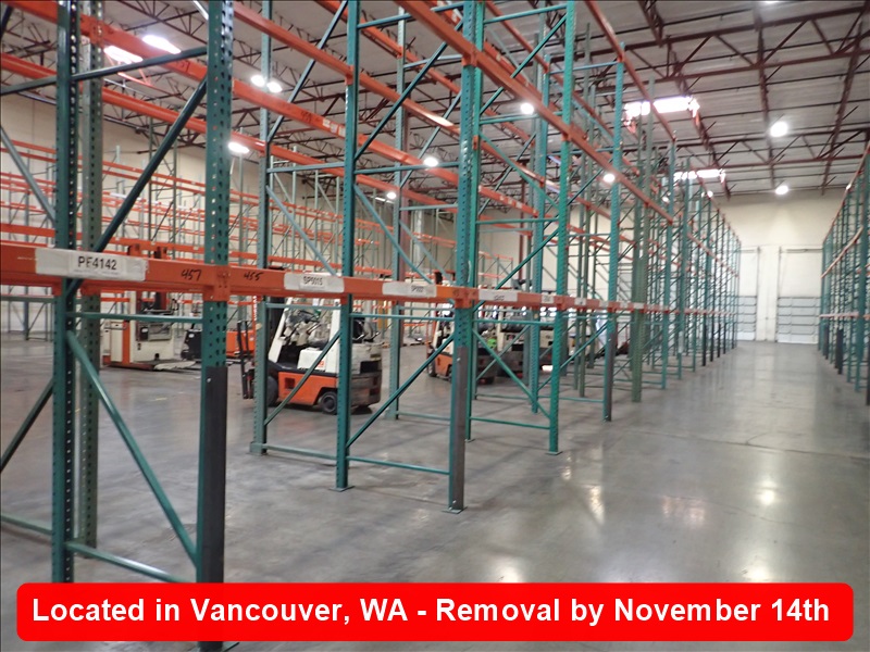 LOT, 23-SECTIONS OF 20' X 44" D X 90" W SHELVING (15 DAMAGED UPRIGHTS, ROW 4, $500 REFUNDABLE DEPOSIT REQUIRED FOR PROPER STUD GRINDING)
