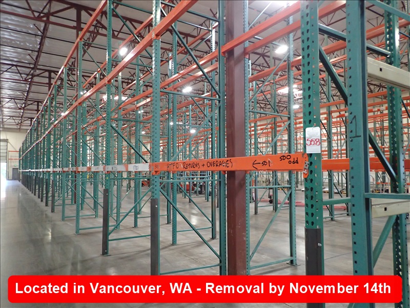 LOT, 24-SECTIONS OF 20' X 44" D X 90" W SHELVING (21 DAMAGED UPRIGHTS, ROW 5, $500 REFUNDABLE DEPOSIT REQUIRED FOR PROPER STUD GRINDING)