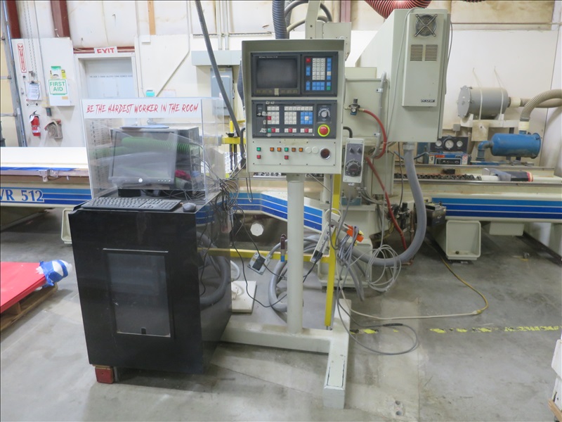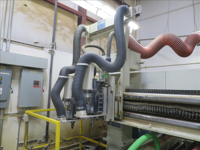 TWIN HEAD CNC ROUTER, 5'X12' VACUUM TABLE, QUINCY QSVB25 25 HP VACUUM PUMP, GE FANUC SERIES O-M CONTROLS
