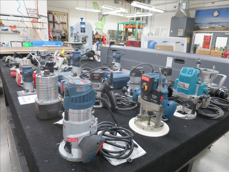 ROUTERS, POWER TOOLS, FLAMMABLE CABINETS, JOINTERS, SANDERS, TOOLBOXES & MISC. SHOP SUPPLIES