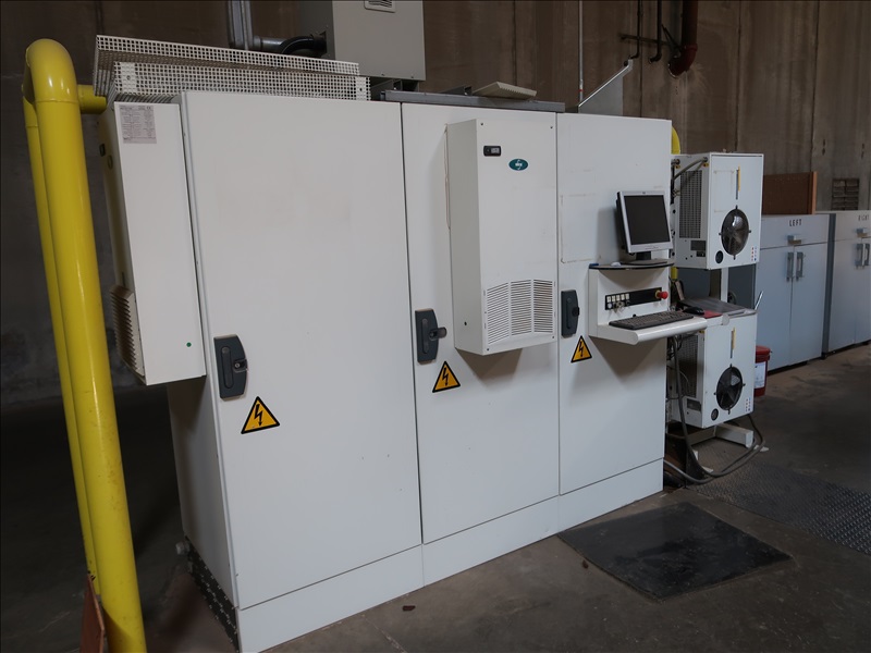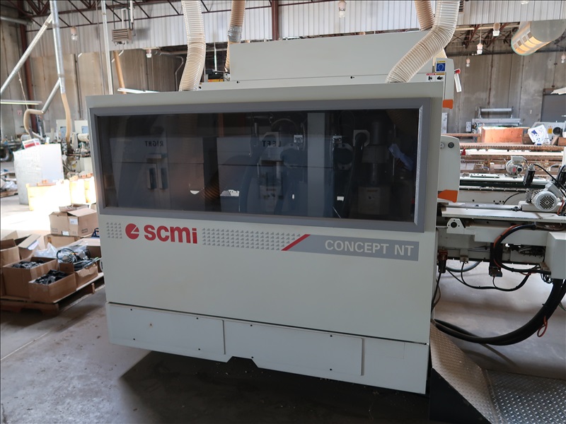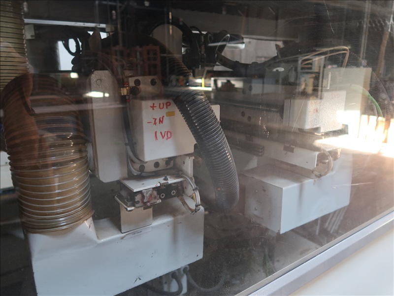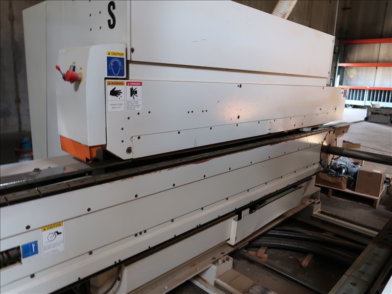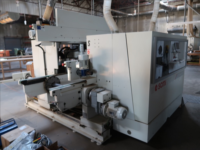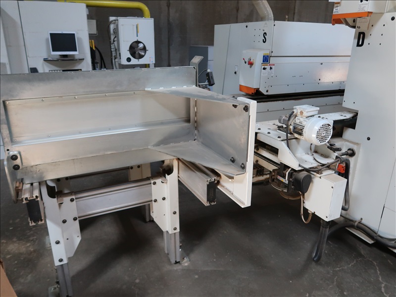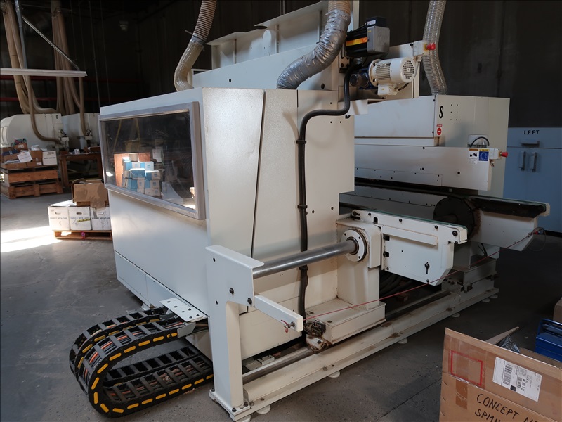 CNC DOUBLE END TENONER W/APPROX 1-1/2"X40" WIDTH & 3" THICKNESS CAPACITIES, VARIABLE SPEED INFEED BELT TO FEED THRU CHAINS W/POP UP BOARD DOGS, (2) PRE-CUTTER STATIONS W/12-TOOL CHANGERS, (2) STICKING HEADS W/12-STATION TOOL CUTTERS, 15 HP LIQUID COOLED HEADS, HSK QUICK CHANGE SPINDLES