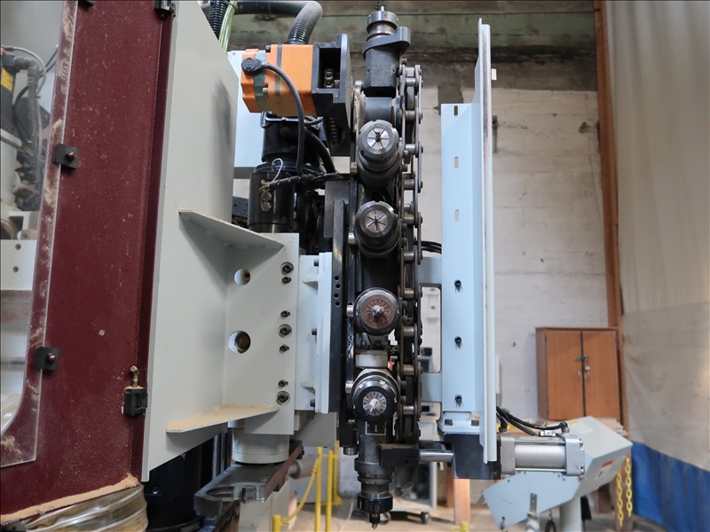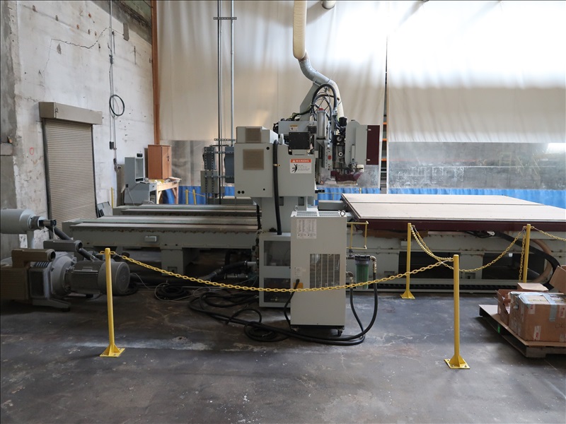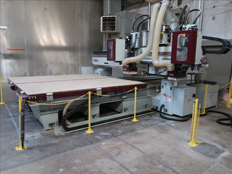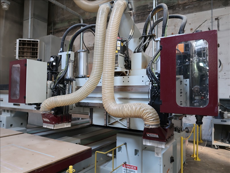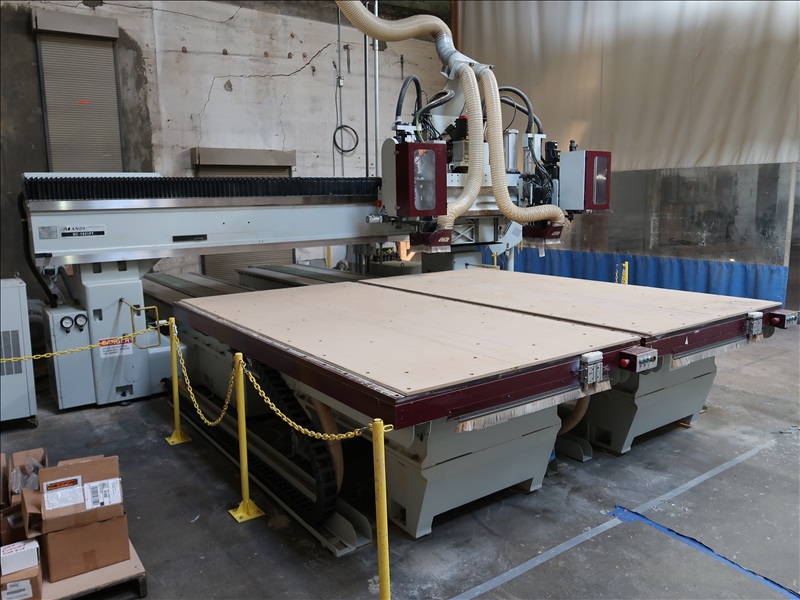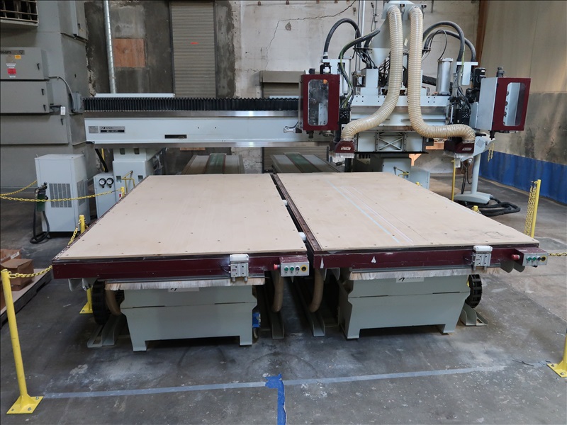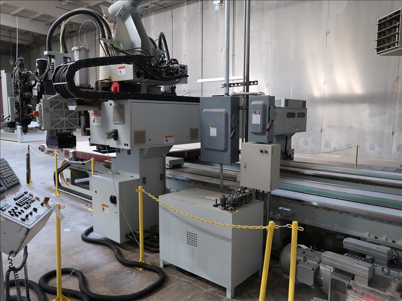 DUAL HEAD CNC ROUTER W/11KW HEADS, 12-TOOL CHANGER, DUAL 63"X121" SUCTION TABLES, 270" OVERALL TRAVEL, BECKER VILF 500 VACCUM PUMPS, HABOR COOLING PUMP, FANUC SERIES 210I-MB CONTROLLER, (20+) TOOLING HEADS